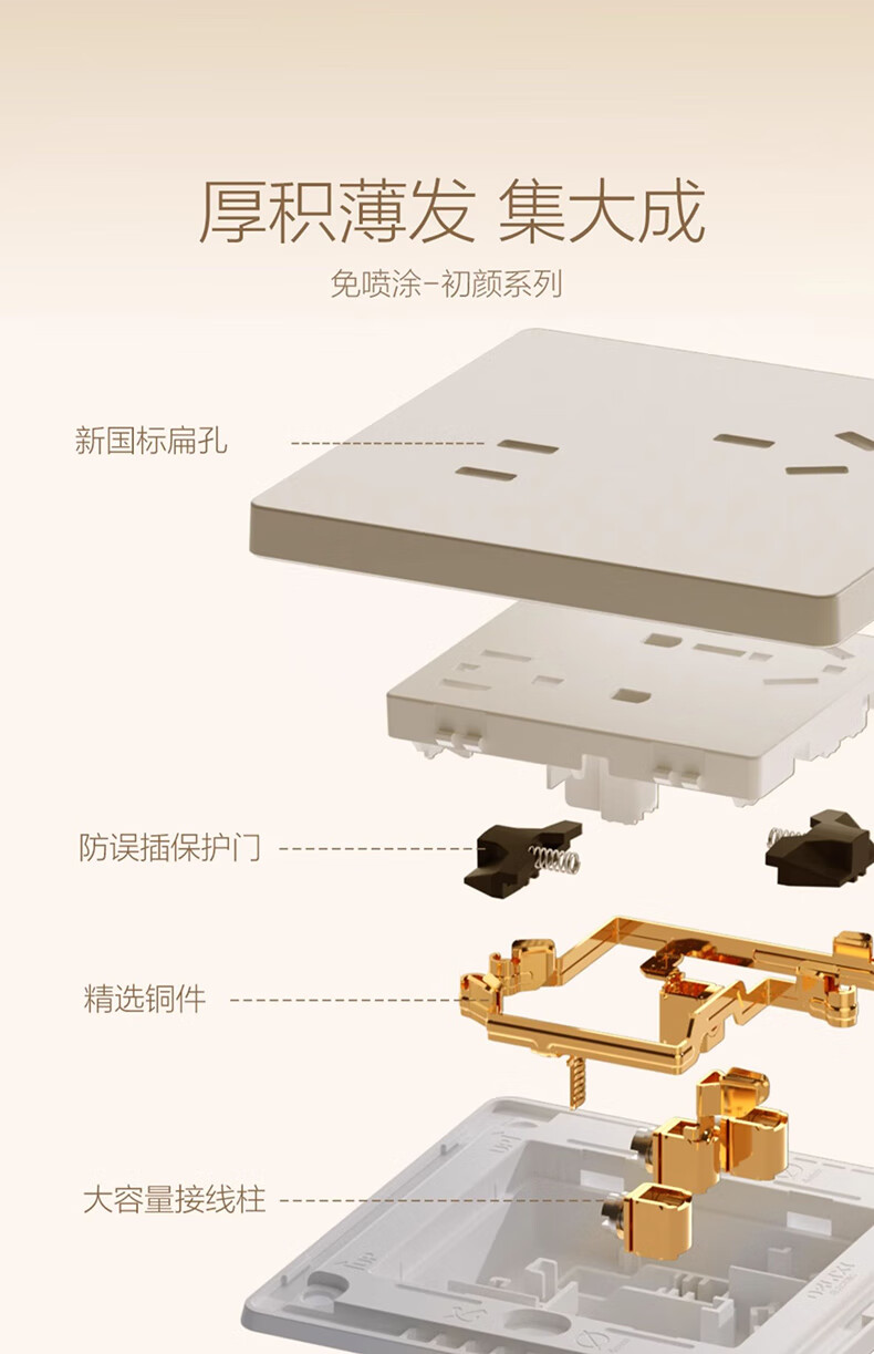 德力西(DELIXI)CD822带开关插座86型暗装无框大板香槟金色拉丝家用墙壁面板 官网 一开单控(1开16A单联大板) 官方电源家庭装修装饰全屋套餐