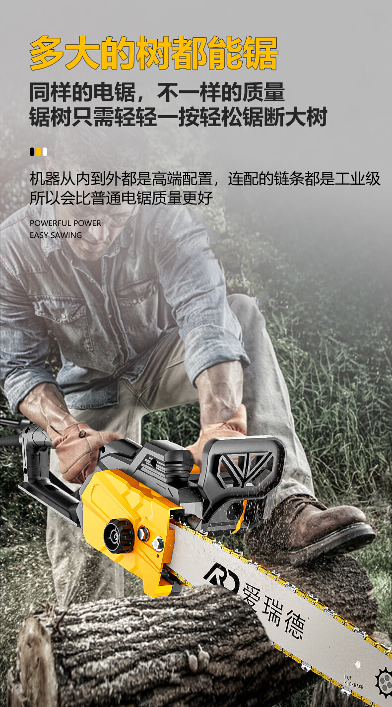 爱瑞德 德国电锯家用电链锯伐木锯木材切割机电动工具 升级款带两根链条