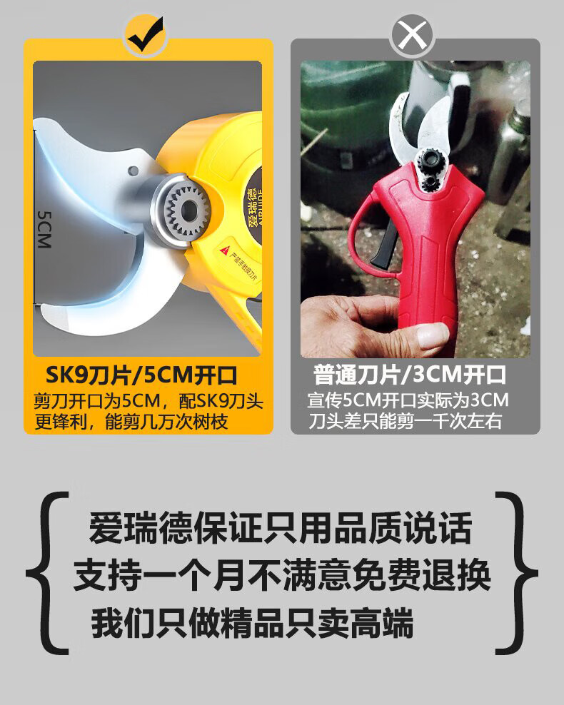 爱瑞德无刷电动剪刀剪树枝充电园林修枝剪果树剪刀园艺剪 电动工具 168VF二电一充(可剪4.0CM)